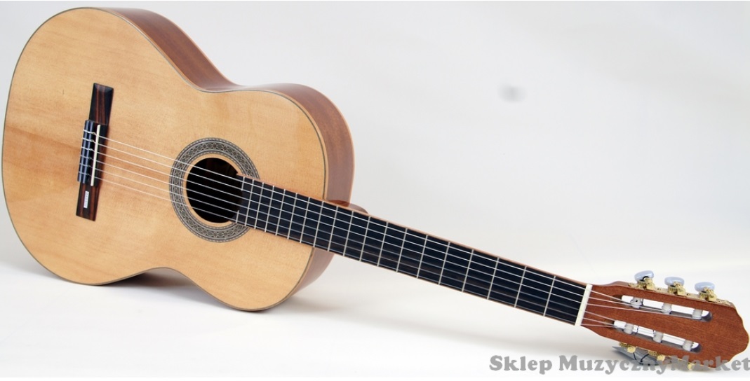 Idealnie sprawdzi się na lekcje gry. Gitara zaskakuje pod względem komfortu gry. W gitarze zamontowane są struny nylonowe.